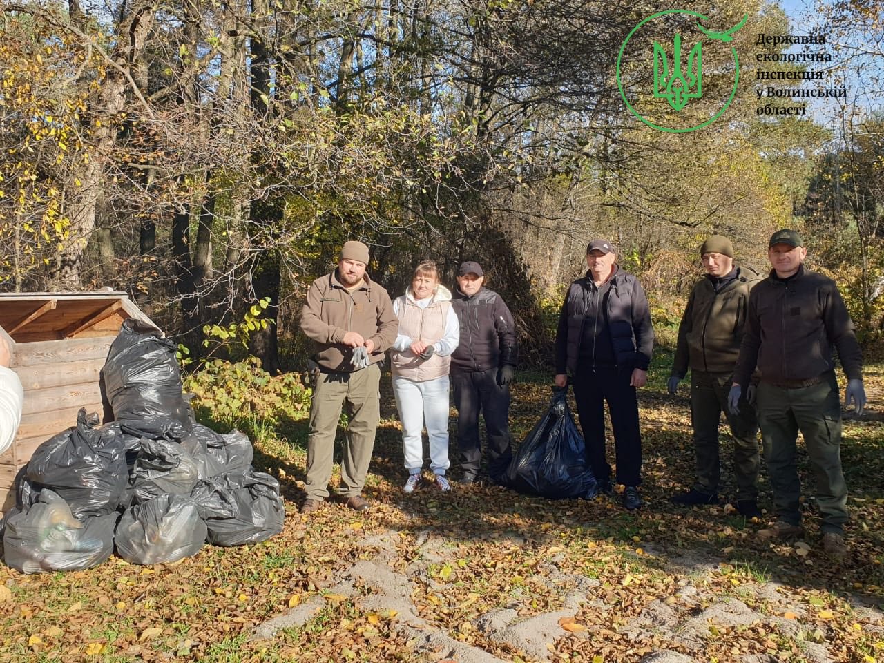 📍Також, наприкінці жовтня, в селі Хорів Володимирського району, державним інспектором з ОНПС спільно з небайдужими жителями цього села, було очищену прибережну смугу ставка від твердих побутових відходів.