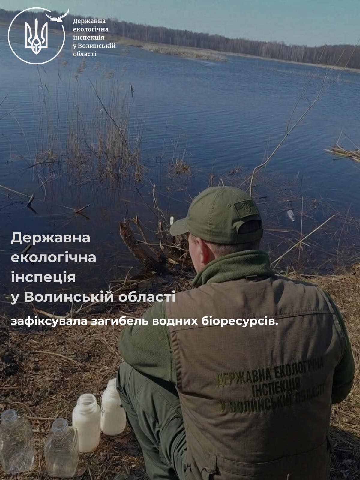 16 березня 2026 року, реагуючи на інформацію від працівників Волинського рибоохоронного патруля, щодо ймовірної загибелі водних біоресурсів на водному об’єкті поблизу с. Берестяни Цуманської ОТГ, спеціалістами Державної екологічної інспекції у Волинській області спільно із працівниками Волинський рибоохоронний патруль було проведено комісійне обстеження берегової лінії та водного плеса водойми.