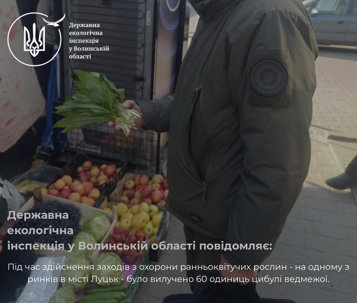 25 березня під час проведення заходів у місті Луцьк, на одному з ринків було виявлено факт незаконного збуту цибулі ведмежої (черемші), яка належить до ранньоквітучих рослин та підлягає охороні.
